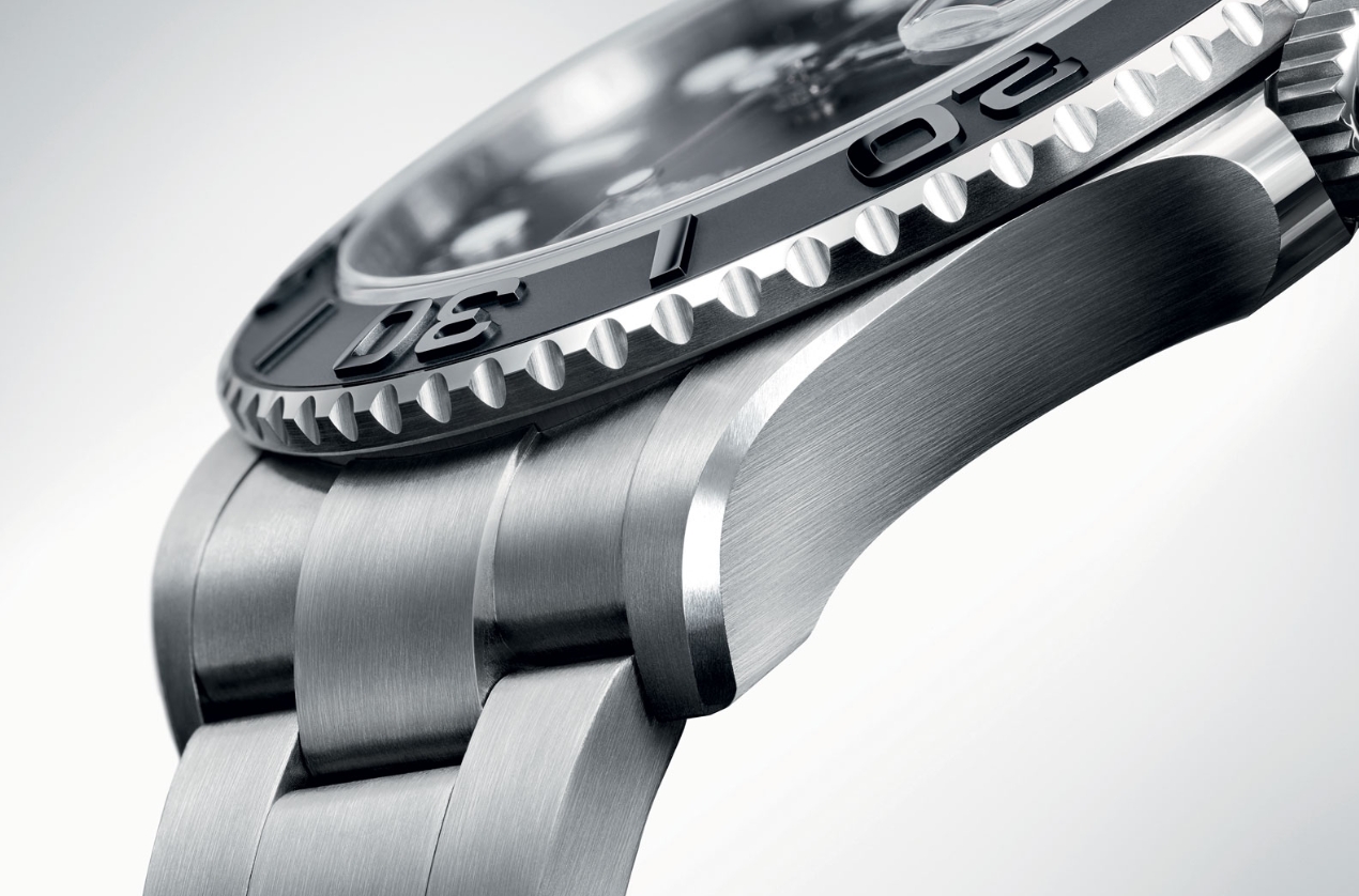 While the Deepsea Challenge is a whopping 50 mm in diameter, the new Yacht-Master is a wearable 42 mm. Larger than the typical cheap copy Rolex dive watches, the Yacht-Master has modern proportions that match the material and aesthetic. And the case is matched with a titanium bracelet that features the brand’s proprietary Easylink extension system.
